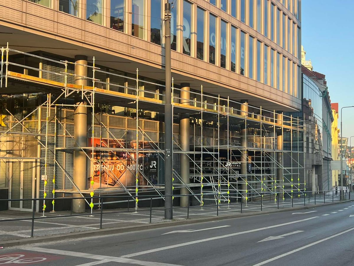 Komplexní lešenářské práce na přestavbě obchodního centra v samém srdci Prahy.